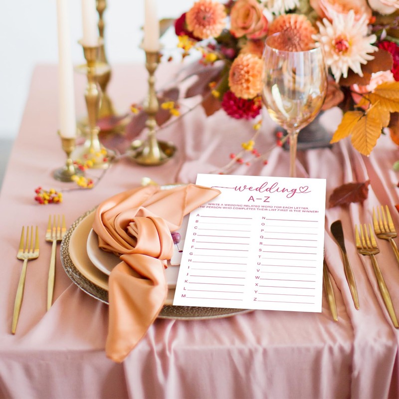 Wedding A-Z Game Cards, Minimalism Wedding Shower Game, 30 Wedding Games Cards, Pink Bridal Shower Games Engagement Party Favors Supplies - B07