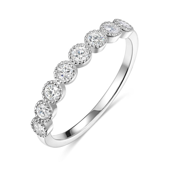 - 【Elegant Eternity Ring】- Set with 0.4 carats of brilliant round cut moissanite, this half eternity band symbolizes everlasting love and commitment, exuding exquisiteness and elegance with its graceful silhouette, ensuring that it will never go out of style, allowing you to embrace timeless beauty.