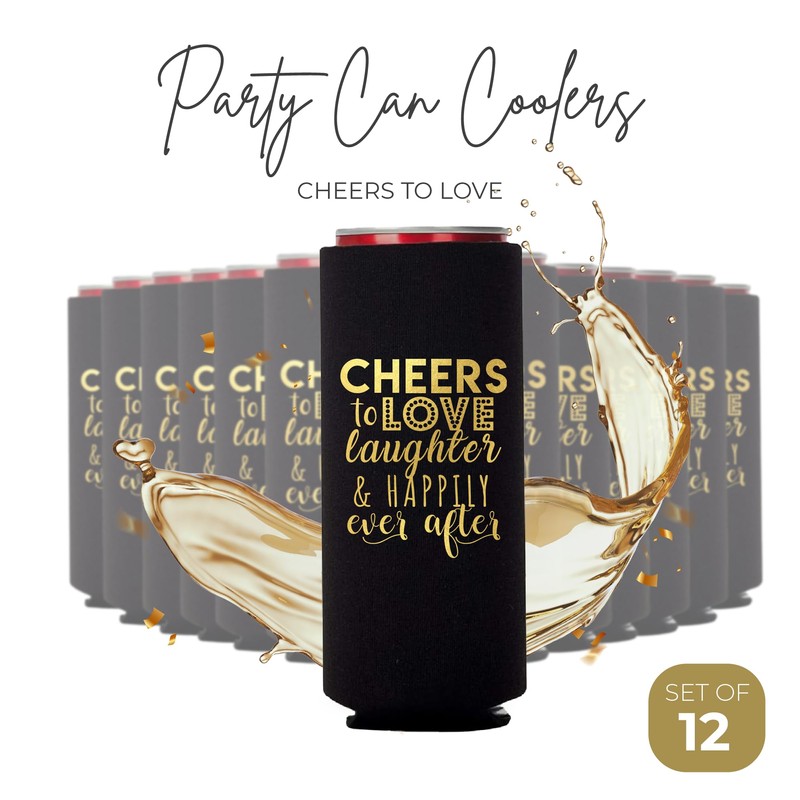 - STYLISH DESIGN - Our package contains 12 "Cheers to Love Laughter and Happily Ever After" Slim Can Coolers! Perfect for Weddings, Bridal Showers, Bachelorette Parties and will make you even famous on Instagram and Snapchat!