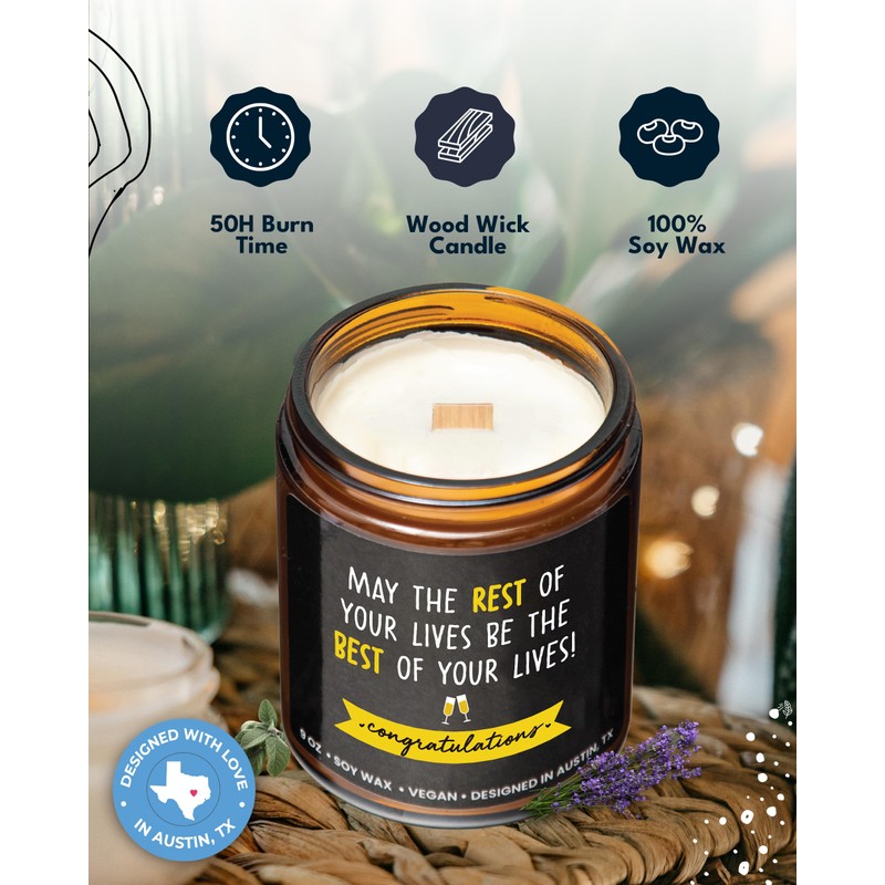 - đź’ Designed with Love in Austin, TX: These wood candle wicks are specifically crafted to be the best new marriage gift! Not only does it have a cute label design, this candle is also designed to last up to 50 hours.