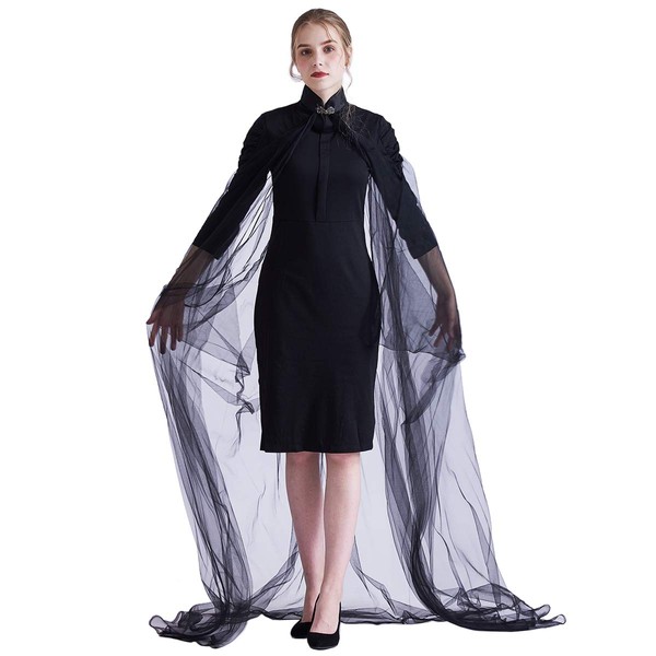 Wedding Cape Tulle Elven Cape Bridal Veils Wraps Cathedral Length, Black Tulle, 13.38" Neck