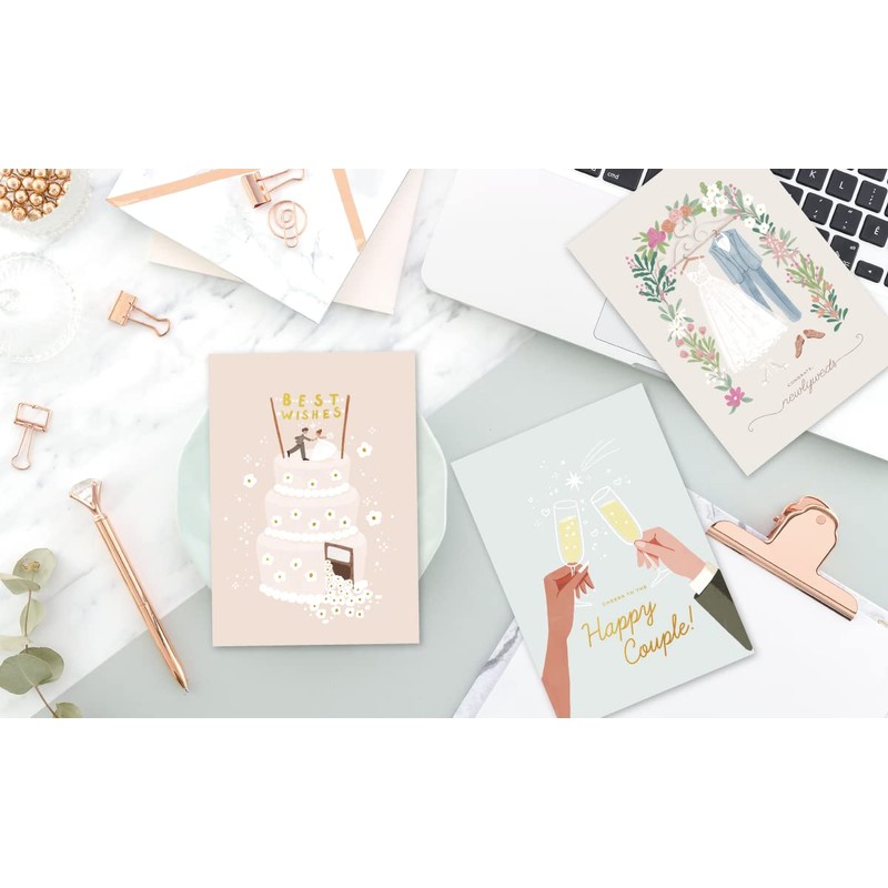 - 5 Unique Illustrations: Whether it’s for an engagement party, bridal shower, or the big day itself, this selection of wedding greeting cards has got you covered for all of these occasions. This pack contains a variety of fun and stylish prints, all designed by a professional illustrator.