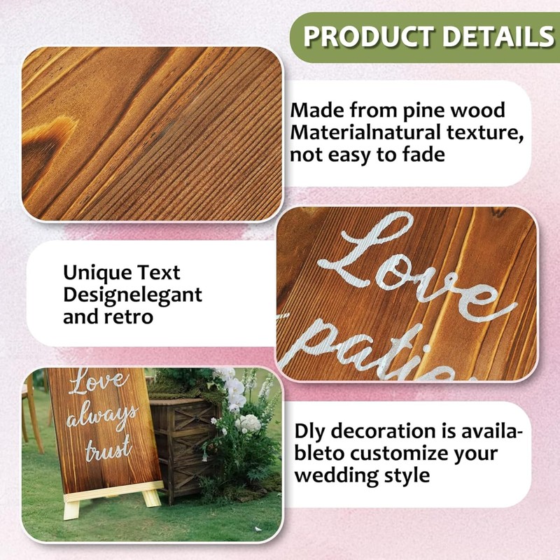 - Multi-functional Pairing: Wedding signs can be complemented not only as standalone pieces but also adorned with elements that match the wedding theme, such as flowers, ribbons, candles, and more. This perfectly enhances the wedding's theme.