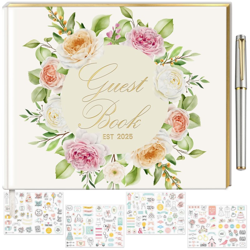 Wedding Guest Book with Pen and Stickers Included , Custom Guest Book Design 2025 , Guest Book Wedding Reception Size7.2" x 9.2" , Beautiful Wedding Guest Book Alternative , Thick Paper Wedding Signs