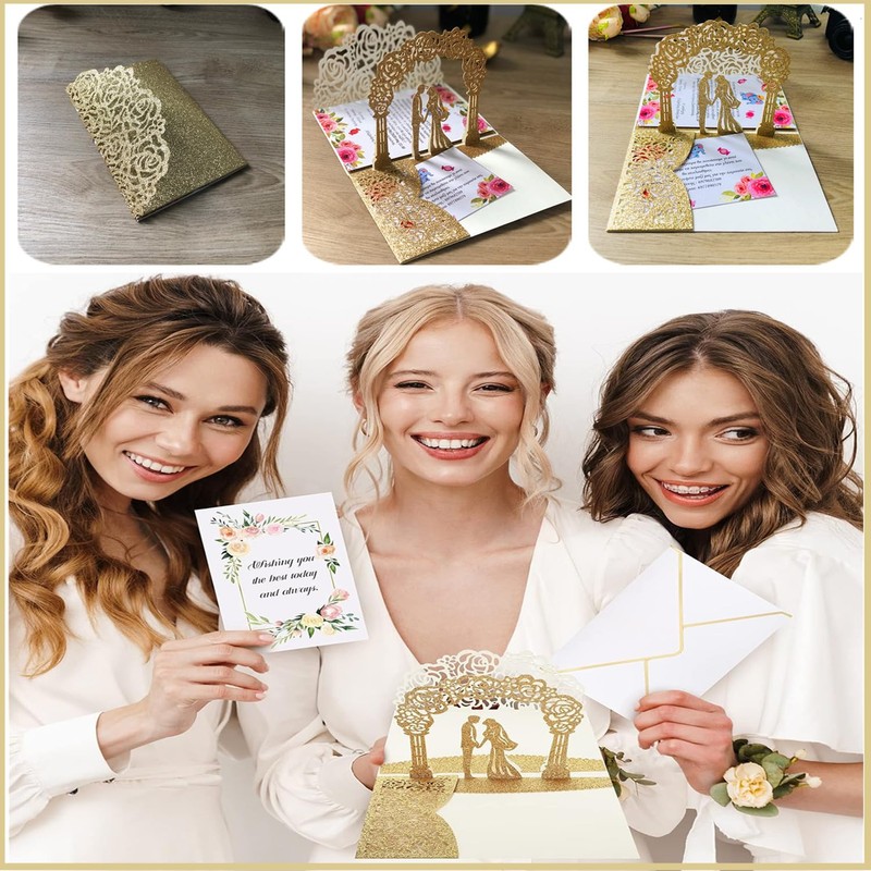 - 【Exquisite Craftsmanship】 The Wedding Pop-up Card Set is Made of reliable paper material, the pop up window can be opened multiple times, laser cutting process to ensure a flat and smooth, making it a souvenir that will last for years; This card represents love and blessings, send good wishes to your loved ones.