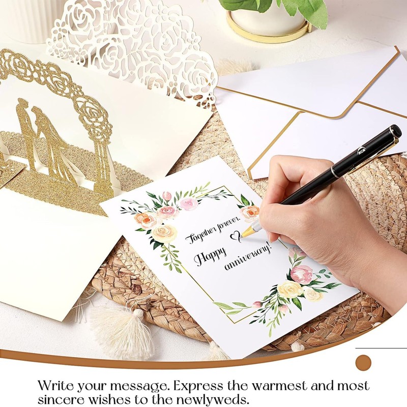 - 【Wedding Pop up Card Set】 You will receive a wedding card set including a pop up card measuring 13 x 18 cm/ 5.12 x 7.09 inches, a message card measuring 12.5 x 17.5 cm/ 4.92 x 6.89 inches and a envelope measuring 13.8 x 19.5 cm/ 5.43 x 7.68 inches, enough for meeting your needs.
