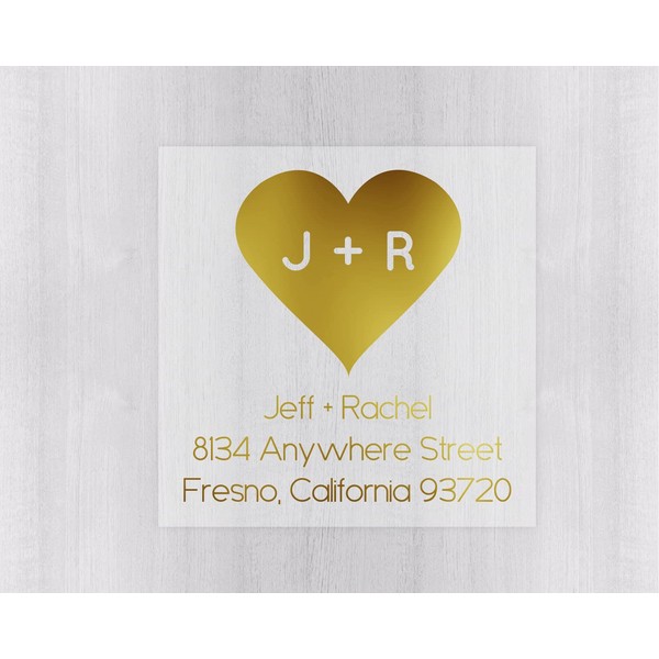 Wedding Return Address Stickers, Gold Foil on Clear Transparent Return Address Labels, Square with Heart Envelope Seals (#149-CF)