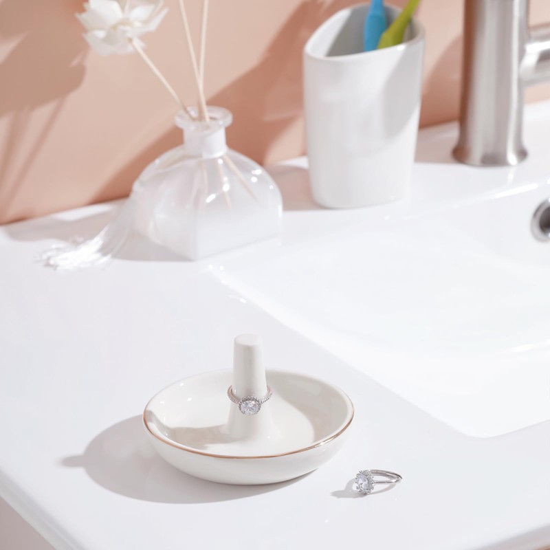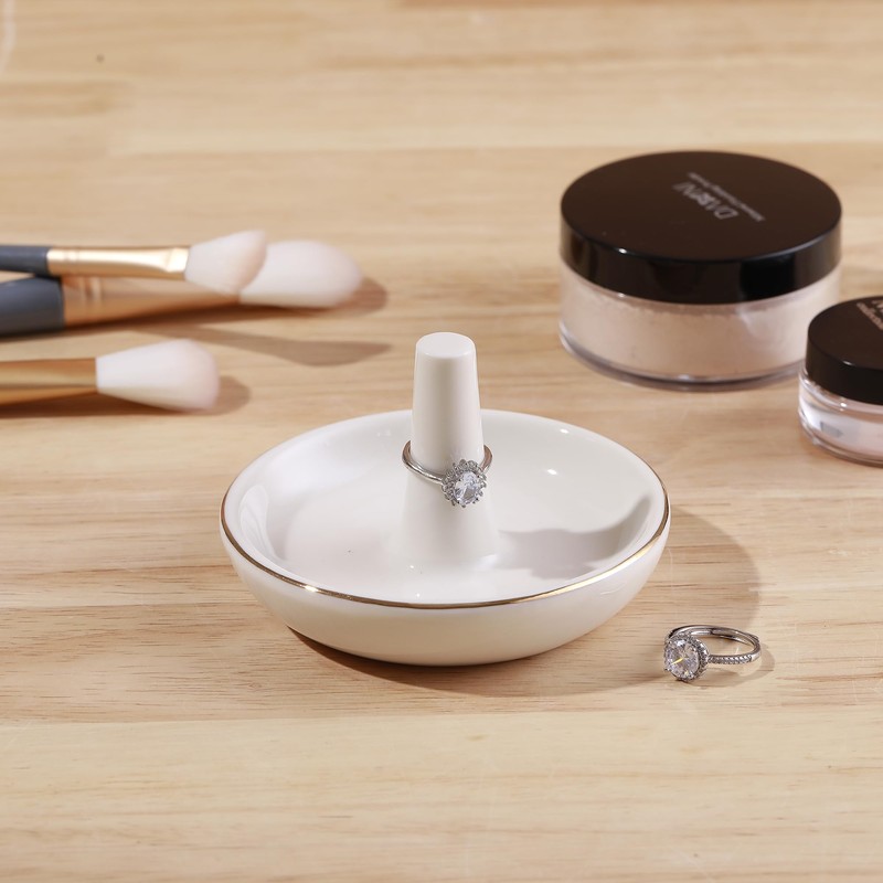 - [Ring Holder for Women] The ring holder dish uniquely designed with a brown line jewelry plate. Great for storing rings earrings necklaces bracelets or other trinkets. Perfect birthday gifts for women to organize their little stuff.