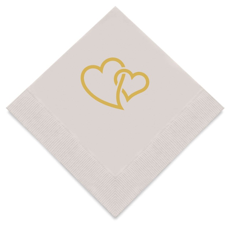 Weddingstar 3-Ply Gold Foil Cocktail Napkins Grey - Linked Double Hearts