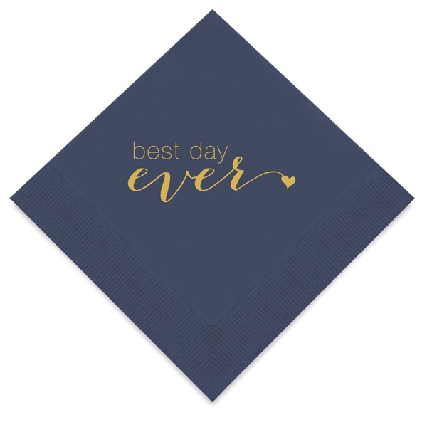 Weddingstar 3-Ply Gold Foil Cocktail Napkins Navy Blue - Best Day Ever