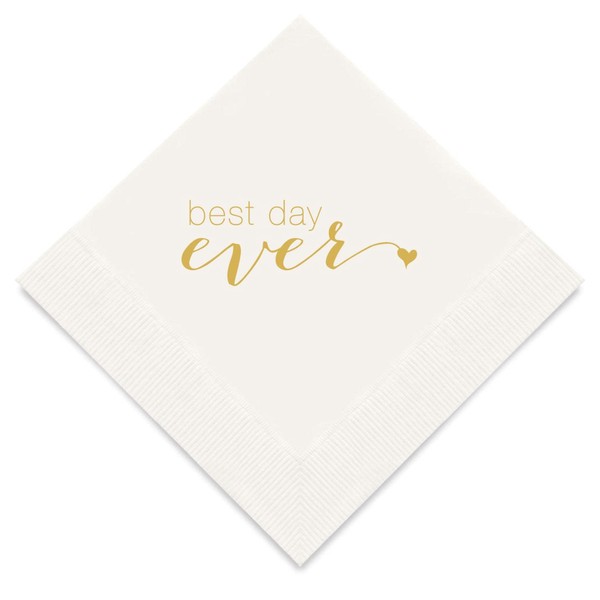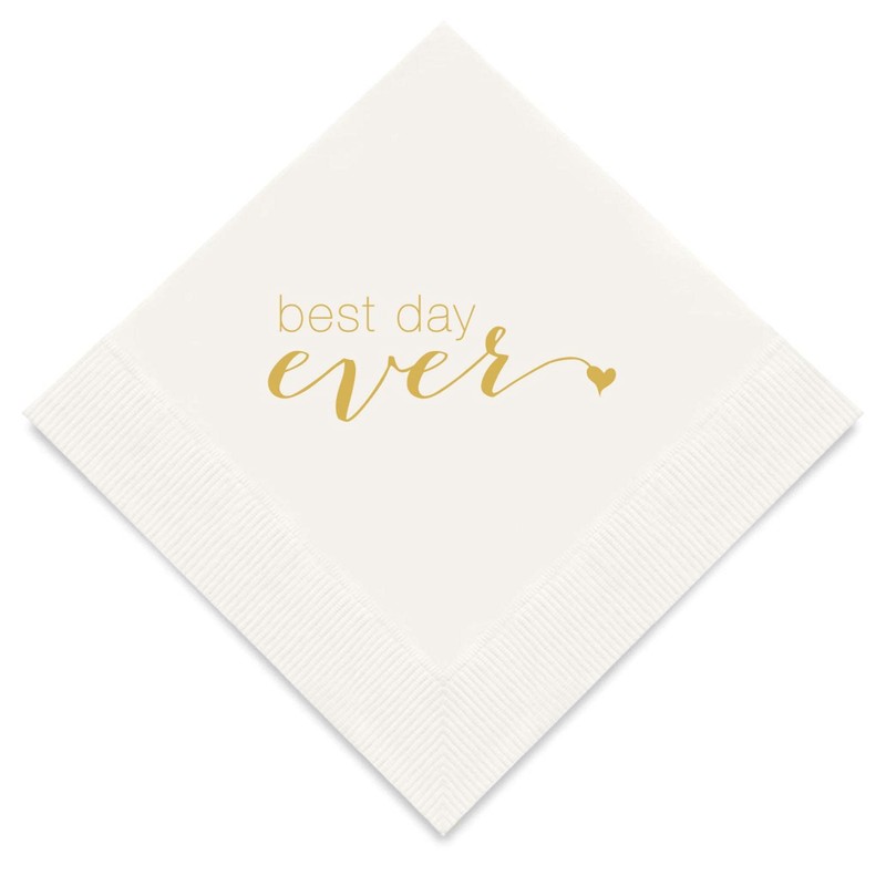 Weddingstar 3-Ply Gold Foil Cocktail Napkins White - Best Day Ever