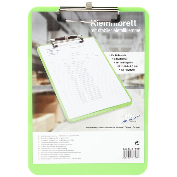 Wedo 576611 A4 Clipboard with Pen Holder - Green