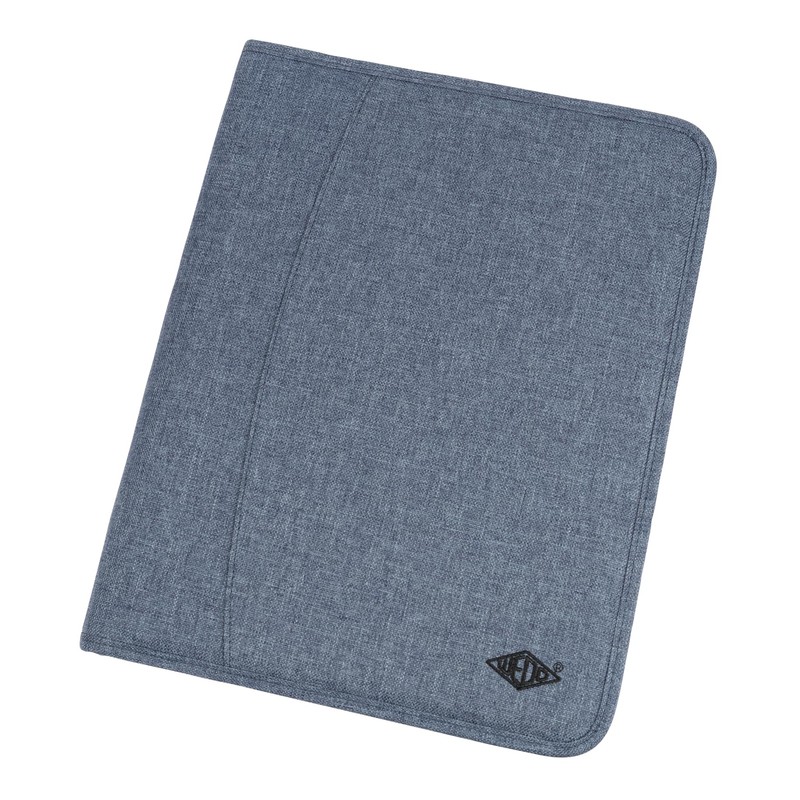 WEDO A4 Denim Writing Case with Zip, Blue, 3 Card Slots, Slots with Elastic Band for Pens, Large Leaf Compartment Behind the Writing Surface, Small Ruler Compartment