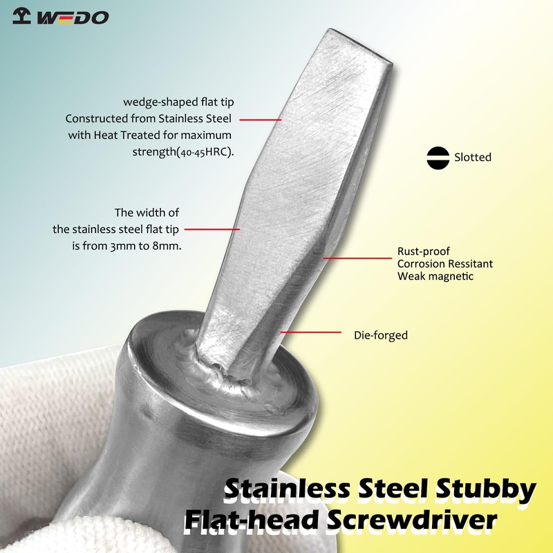 WEDO Stubby Screwdriver, Stainless Steel Slotted & Flat Head Screwdriver, 8mm x 38mm, Corrosion Resistant, Rust Proof, Environmentally Friendly