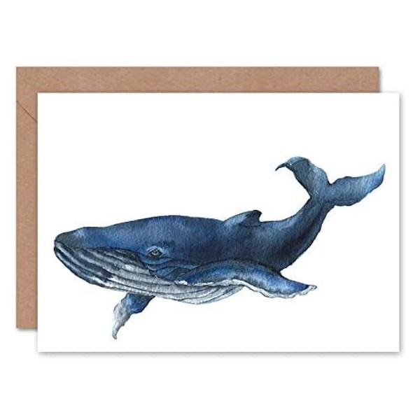 Wee Blue Coo Blue Whale Watercolour Greeting Card With Envelope Inside Premium Quality