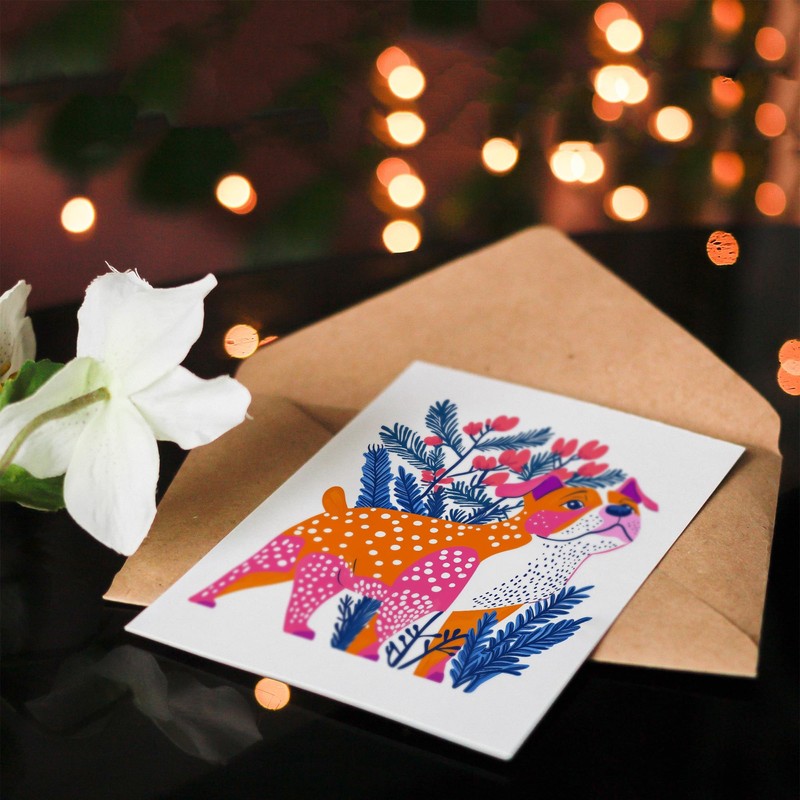 Wee Blue Coo Greeting Card Dog Lover Cute American Bulldog Vibrant Portrait Blank For Him Or Her Art Xmas Christmas Card