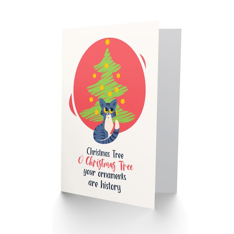 Wee Blue Coo Naught Kitty Christmas Tree Christmas Greetings Card