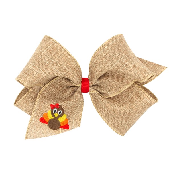 Wee Ones Girls Linen Hair Bow with Turkey Embroidery, Turkey, King