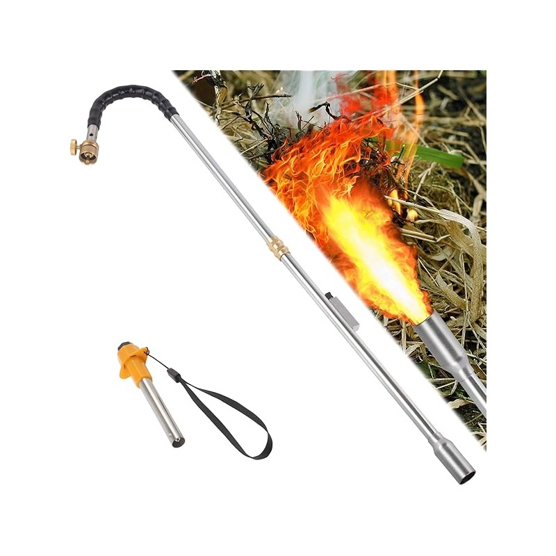 Weed Burner Torch for Propane Tank, 33" Weed Torches for Outside Propane Weed Torch Built in Ignition Flamethrower Non Slip Rubber Grips Iron Pipe 80000BUT Clear Weed Torches