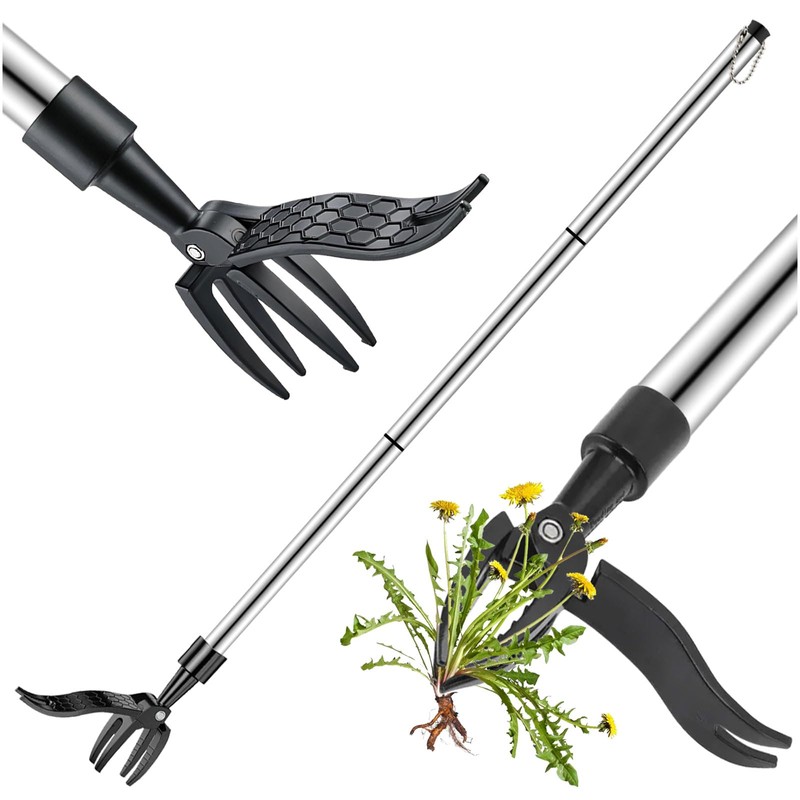 1. Our weed puller adjustable tool features a 4-claw design that easily removes weeds from the soil. The multi-section long handle design allows for customization based on user height, ensuring the perfect length for everyone. The length provides ample reach, allowing you to target weeds in various areas of your garden without strain.
