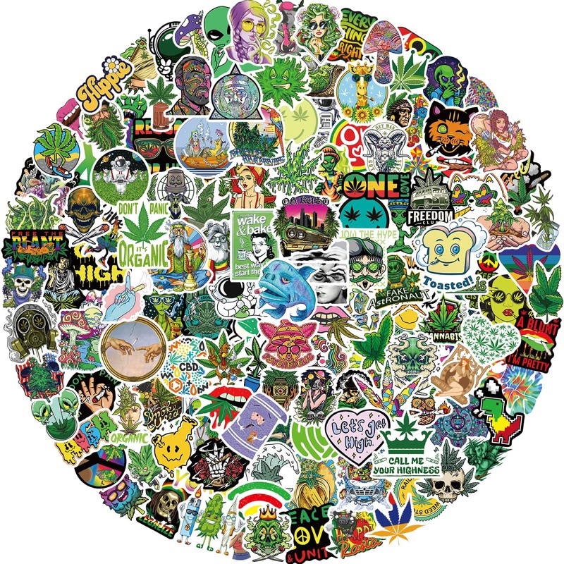 Weed Stickers, Pack of 150 Funny Weed Stickers, Cool Vinyl Waterproof Green Plant Sticker Set for Laptop, Skateboard, Car, Bicycle, Motorcycle, Adults