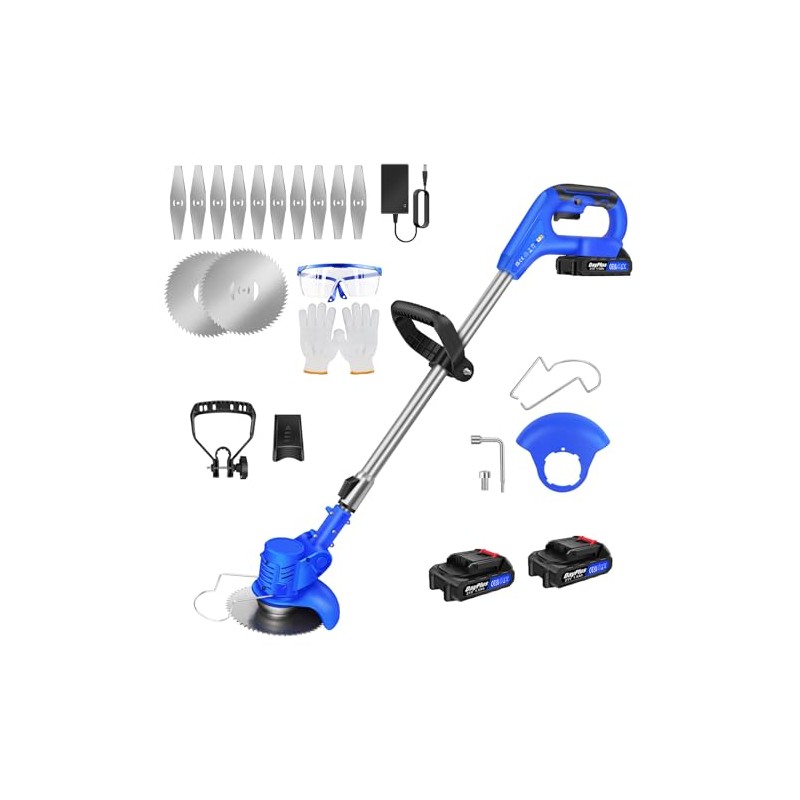 - 【Efficient Trimming】: This electric weed cordless eater comes with two types of cutting blades, including Alloy Saw Blades and metal blades. The weed wacker battery operated covers a larger area with each pass. The cutting diameter ensures efficient trimming, while the all-metal blades guarantee precise cutting for a beautifully manicured lawn.