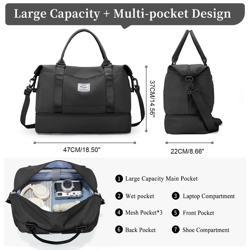 • Multi-Functional Weekend Bag: Perfect for daily use,gym,travel, overnight stay, or a carry-on. Suitable for travel bag, carry on bag,overnight bag,duffel bag, weekender bag,personal item bag,gym sports bags