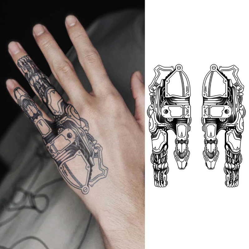 - CYBERPUNK PARTY STYLE: Channel futuristic vibes with bold mechanical finger tattoos — featuring biomechanical lines and robotic detail. Designed to transform your look for Halloween, cosplay, themed parties, and music festivals.