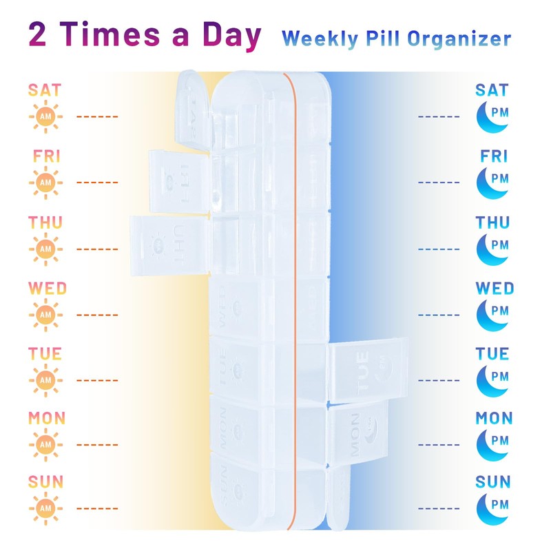 Weekly Pill Organizer 2 Times a Day, Travel Medicine Pill Organizer, Pill Box Case 7 Day AM PM BPA-Free, Pill Container for Vitamins, Fish Oil, Supplements and Medication, White
