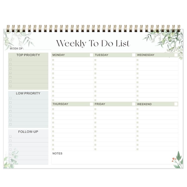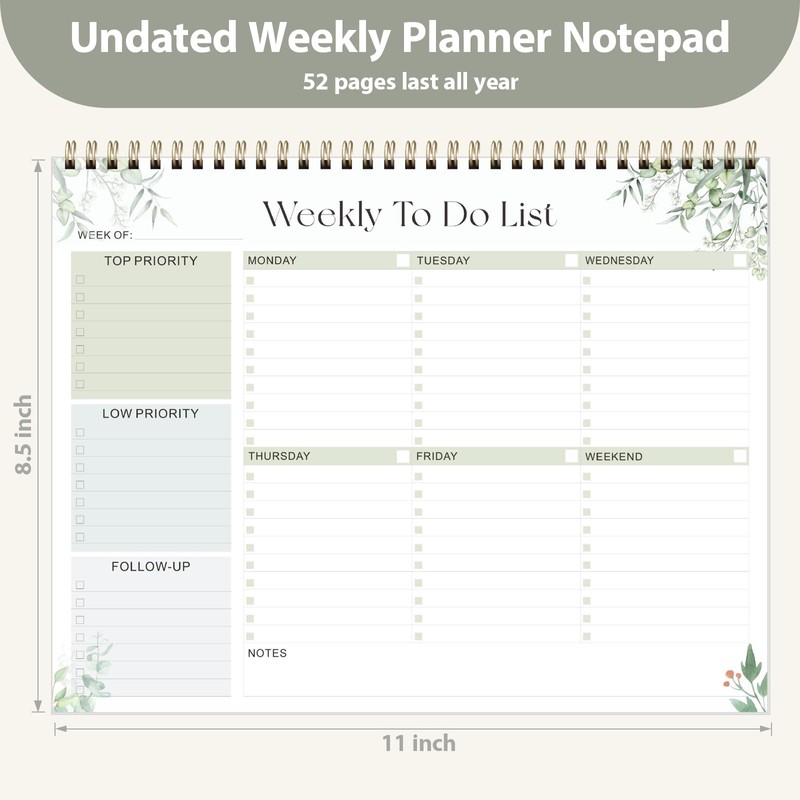 Weekly To Do List Notepad, Undated Planner with 52 Sheets (8.5''x11''), Desk Weekly Planner for Women & Man, Home School & Work (Leaf)