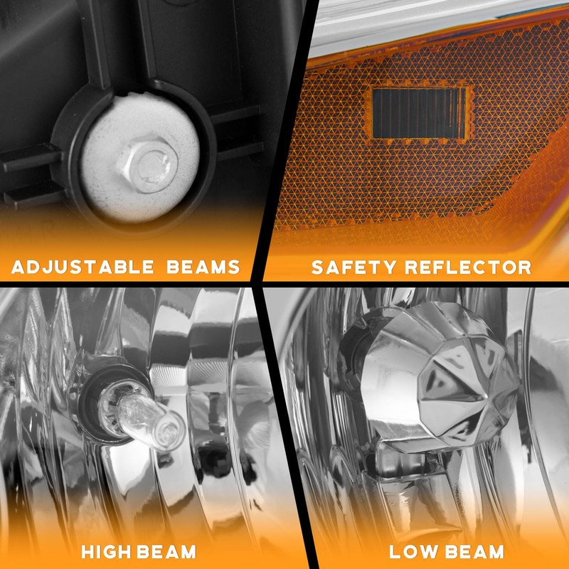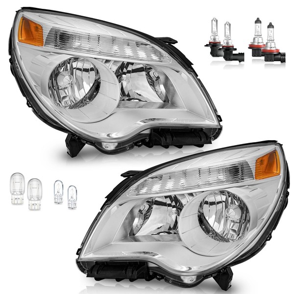 WEELMOTO Compatible with 2010-2015 Equinox Headlight Assembly LS/LT Headlamp Replacement Chrome Housing Amber Reflector Left+Right Pair Set
