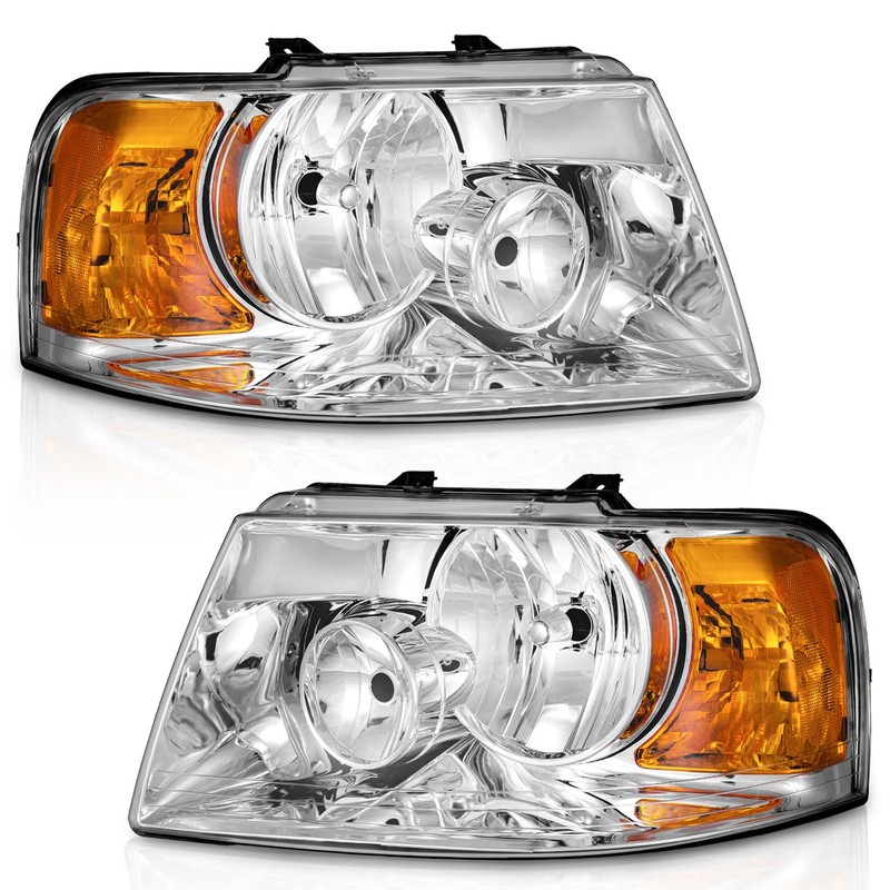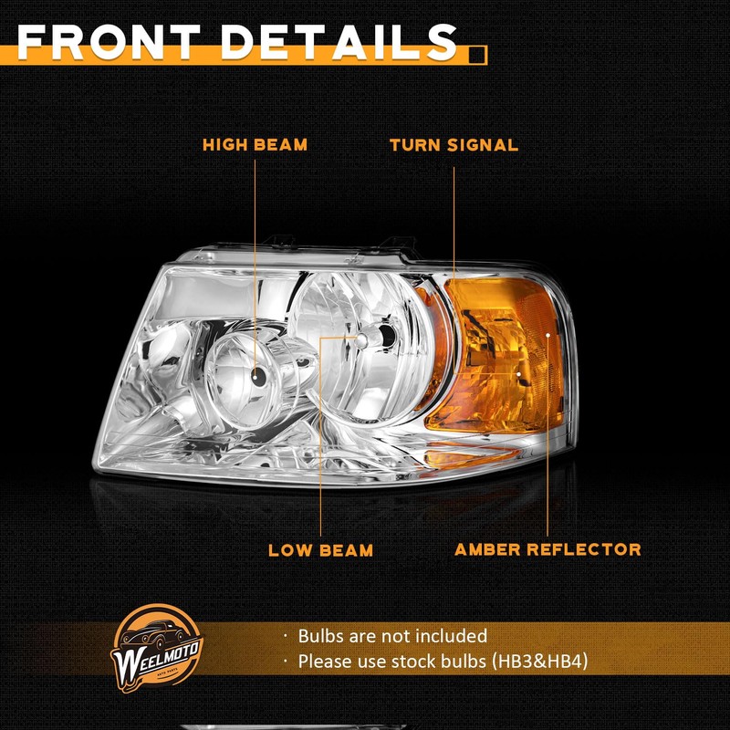 WEELMOTO Halogen Headlights Compatible with 03-06 Ford Expedition Headlamp for 03 04 05 06 Expedition Chrome Housing Amber Reflector Passenger & Driver Side