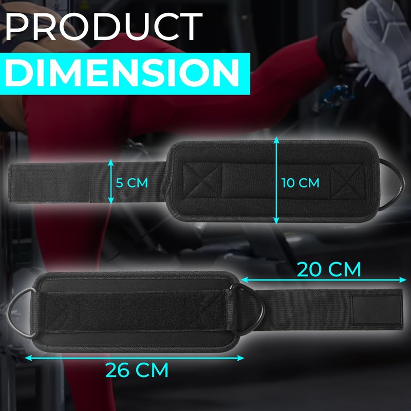 - Easy Adjustments:these ankle straps size is 25.5*10 cm,Expanded size is 48.5 cm.The dual buckle design allows for fast and secure adjustments,making it easy to switch between exercises or users.Spend less time adjusting and more time focusing on your workout.
