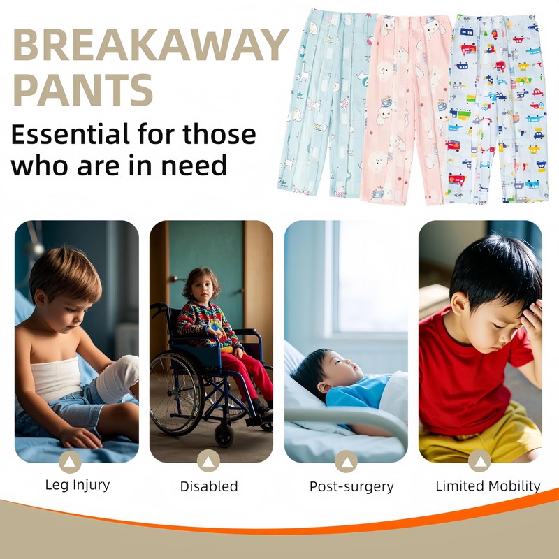 - FULL OPEN: These adaptive pants for post leg surgery are designed with magic stickers on both sides, from waist to bottom. They can come completely or partly apart. It's definitely a must have for kids with limited mobility, especially convenient for recovery after surgery.