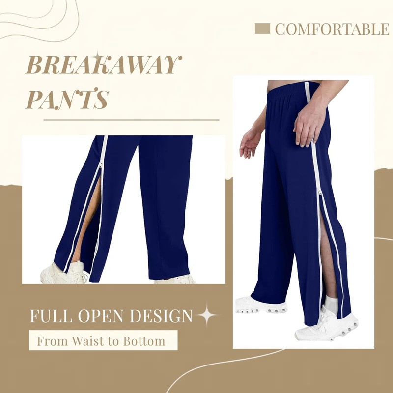 WEEOATAR Men Tear Away Pants Post Surgery Pants Breakaway Basketball Pants,2 Sides Zippers with Pockets,Open Bottom and Loose Fit Recovery Pants for Post-op,Disabled and Incontinence(Dark Blue,XL)