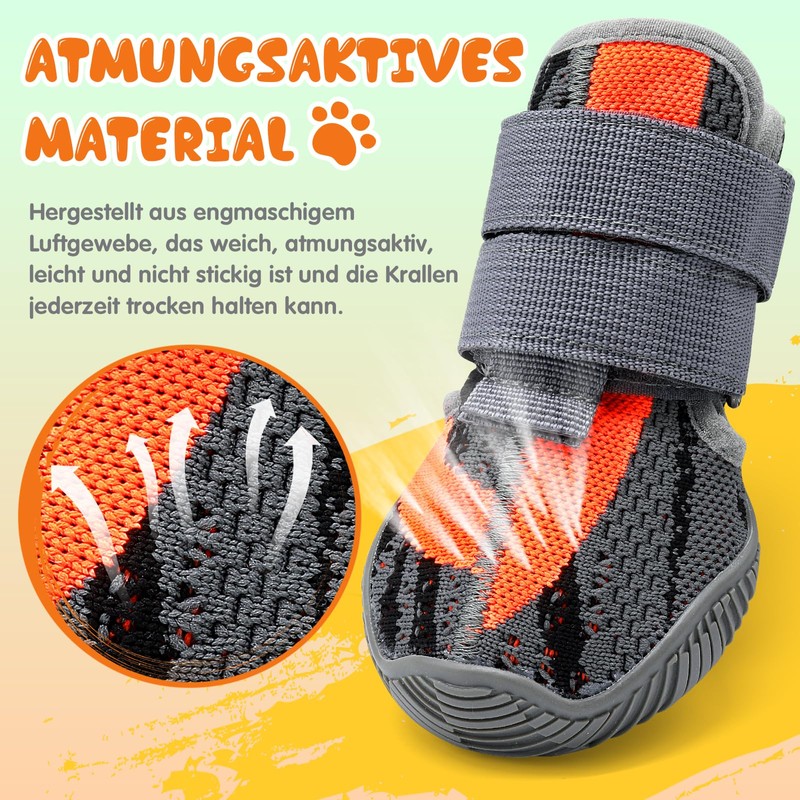 - LIGHTWEIGHT AND COMFORTABLE WEARING - These dog shoes are made of tightly woven, breathable mesh material, which makes you feel light and comfortable. The thick inner lining in the ankle area protects against friction and ensures a comfortable fit, ideal for all outdoor activities