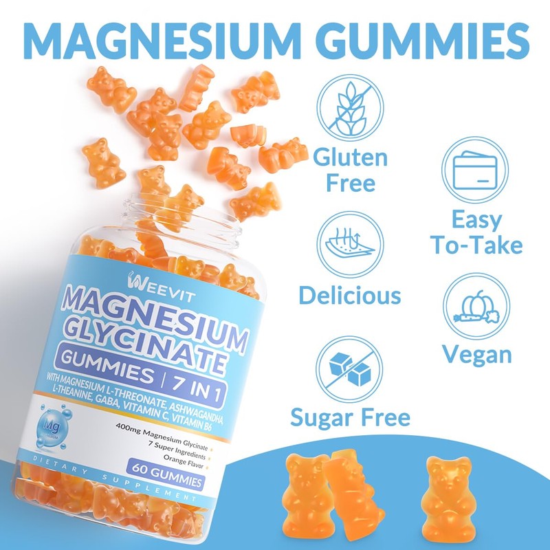 • Premium Formula: Per serving magnesium gummies contain 400mg Magnesium Glycinate and 200mg Magnesium L-Threonate, combined with Ashwagandha, L-Theanine, GABA, Vitamin C, Vitamin B6 for maximal efficacy. Comes with 120 magnesium gummies, 2 month supply.