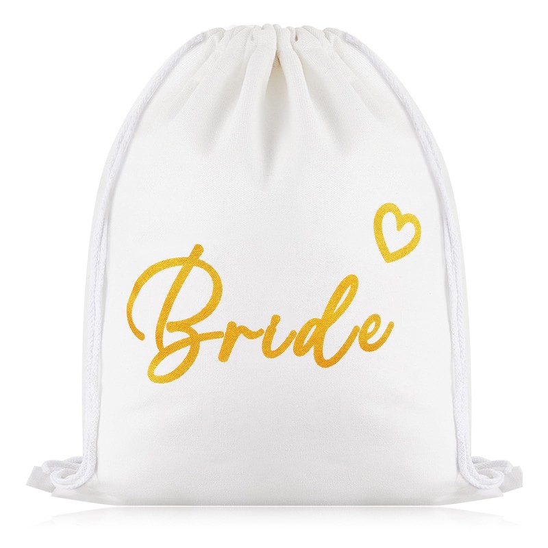 Weewooday 37 x 46 cm Gym Bag Backpack for Bride Team Bride Canvas JGA Fabric Bag with Drawstring Bride Bridesmaid Accessories Gift for Bachelor Party Bridal Party, White with golden hot foil stamping
