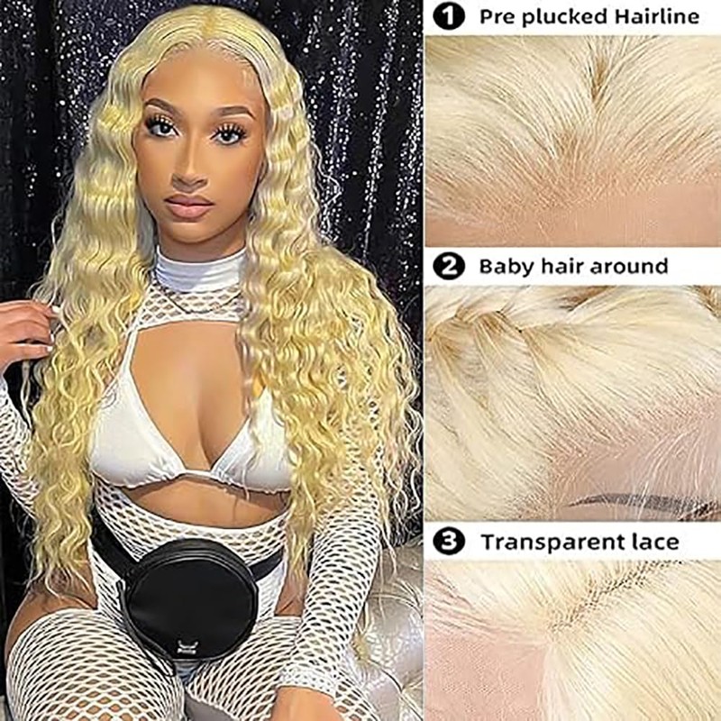 Weeybay Real Hair Wig for Women Wigs Deep Wave Human Hair Wig Blonde 4 x 4 Lace Closure 613 Colour 150% Density Unprocessed Brazilian Remy Hair Glueless 26 Inches