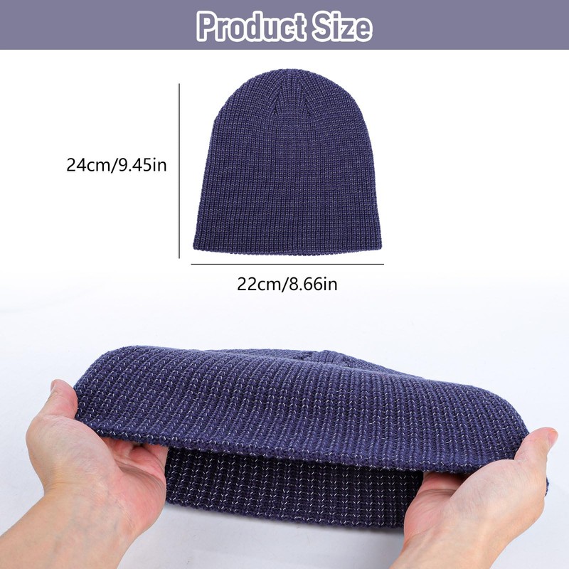 - 【REFLECTIVE BEANIE】The hat is designed with high-shine reflective fibers, making you visible in low-light conditions. Whether you're running, cycling, or taking a walk at night, the reflective material ensures that drivers and pedestrians can see you, providing extra safety and peace of mind.