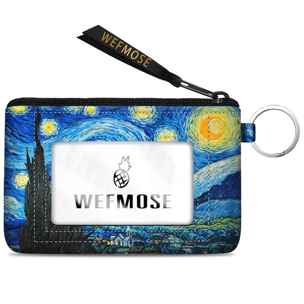 WEFMOSE RFID Small Wallet Keychain with Clear ID Window Zipper Cute ID Case Coin Purse for Women Water Resistant Coin Pouch-Starry Night Keychain Wallet