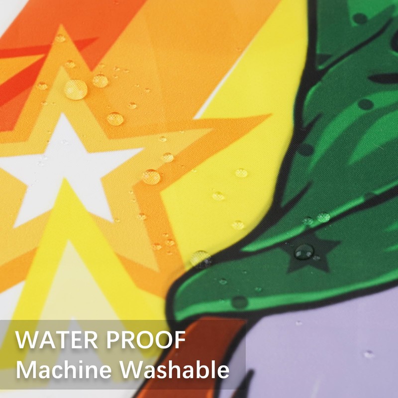- High-Quality Waterproof Material: 100% high-quality polyester waterproof fabric, non-fading, designed for humid bathroom environment, it can use long-term. And the green gnomes bathroom curtain is 72 inches × 72 inches suitable for all types of bathrooms