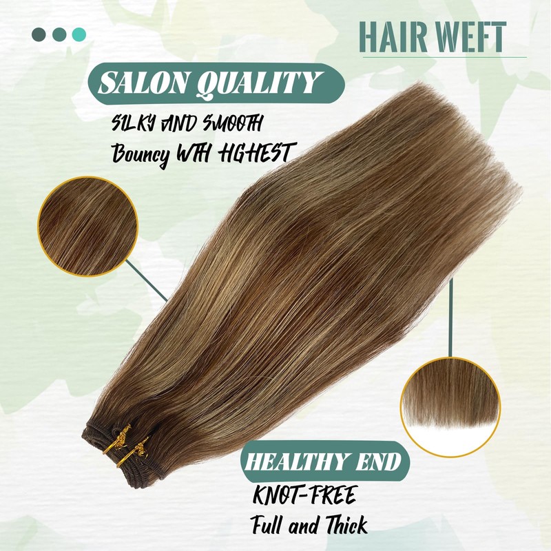Weft Hair Extensions Human Hair,Ombre Sew in Weft Extensions Chestnut Brown and Beige Brown Highlights Sew in Hair Extensions Real Human Hair,14Inch Brown Sew in Bundles Human Hair Wefts Extensions