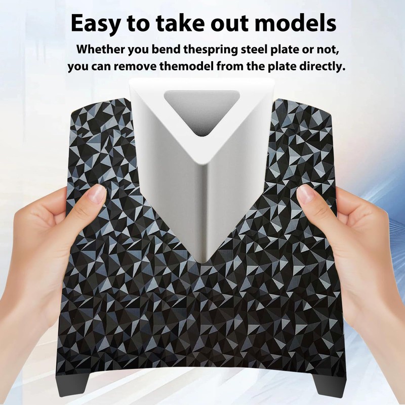 • 【 Easy to Remove and use】The spring steel sheet can be bent to remove the model quickly, without the help of other tools. And the plate will return to flatness. Made of spring steel plate. Flexible, removable, high strength and heat resistance, dual-side design, thicker and more durable. Easy to use, put the printing plate onto the lab printer hot bed, then the print bed levelling will automatically go on while machine powered on. (The smooth surface has a factory protective film)