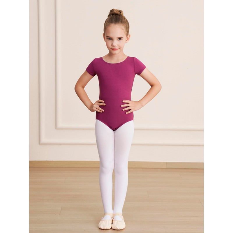 WEGETIT Gymnastics Leotards for Girls Ballet Dance Toddler Leotard Short Sleeve Bodysuit (Wine, 2-4T)