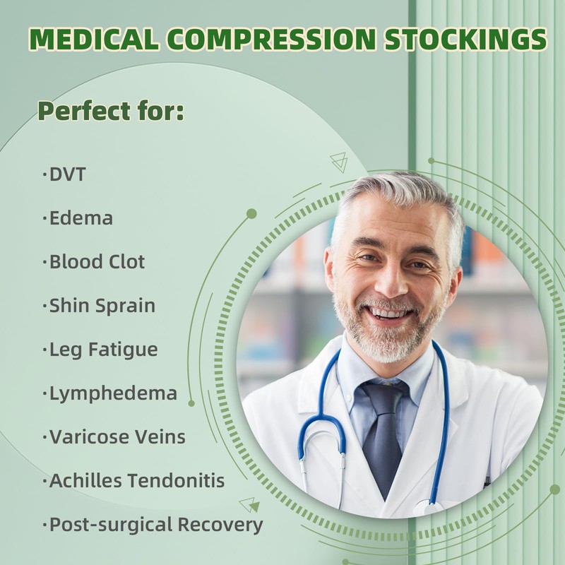 • [DAILY OCCASIONS USE]-----These compression stockings can be used on many different occasions. Comfortable fit with durable support. The compression stocking also reduce muscle cramping while re-energizing tired legs, suitable for people who often stand or maintain a long posture time. Whether you're a frequent traveler, a nurse, a teacher, an elderly person, or a pregnant woman, the socks promotes blood flow, helping to combat leg heaviness and discomfort.