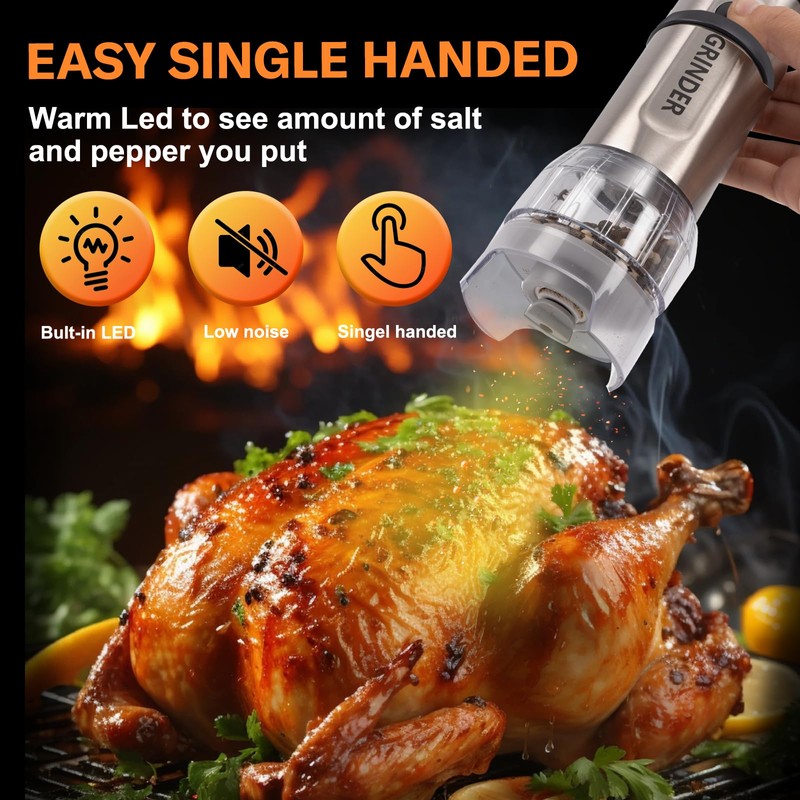 - Durable Ceramic Grinding Core: The automatic salt and pepper grinder set features a high-strength ceramic grinder core; The salt and pepper grinder is wear-resistant, rust-proof, ideal for grinding pepper, cloves, coarse salt, cumin, and other dry spices.