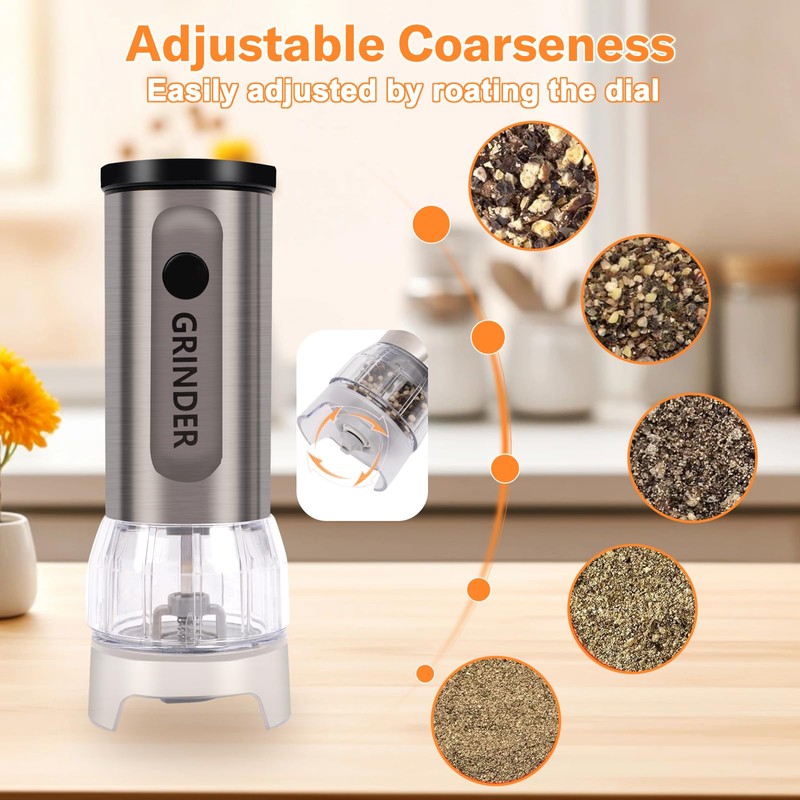 - Adjustable Grind Coarseness: Customize your seasoning with battery operated salt and pepper grinder set adjustable grind settings; Whether you crave a fine dusting or a coarse burst of flavor, our salt and pepper grinders adapts to your dish and taste.