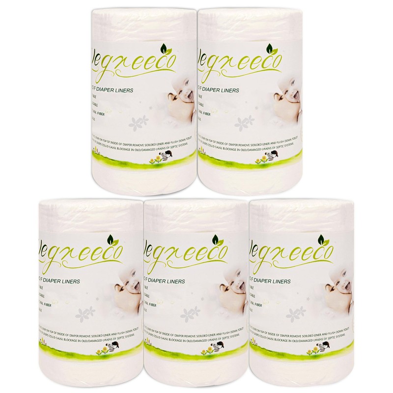 wegreeco Unscented Diaper Liners - Fragance Free and Chlorine Free Cloth Diaper Liners - 100 Sheets Per Roll (5 Roll)