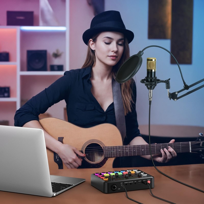 - ๐๐ ๐๐ข๐ฑ๐๐ซ ๐๐ฎ๐ง๐๐ฅ๐ --The Podcast Equipment Bundle is Equipped with an audio mixer, a microphone ,a Double-Layer Pop Filter, an adjustable suspension scissor arm stand, a Shock mount, an Anti-wind foam Cap, earphone,USB-C charging cable, Dual Type-C OTG cable, 3.5 to 3.5mm audio cable